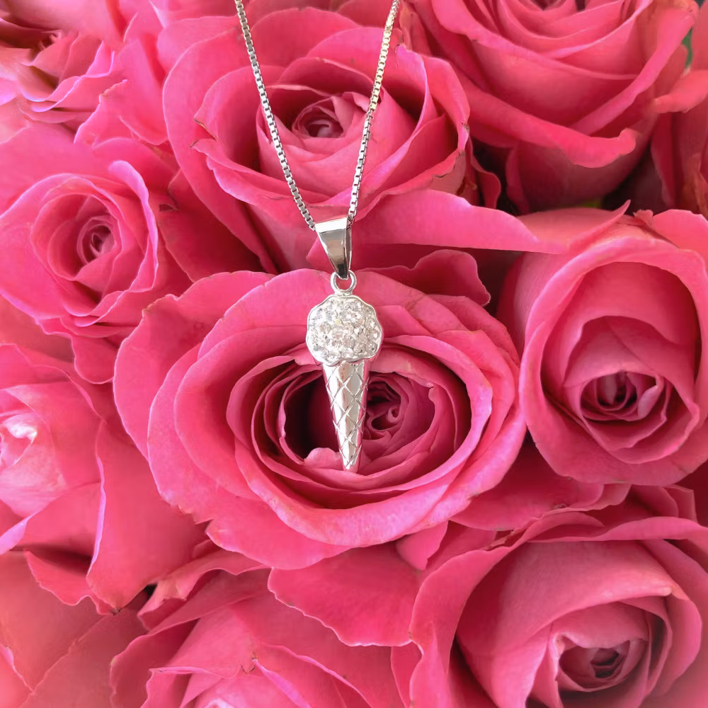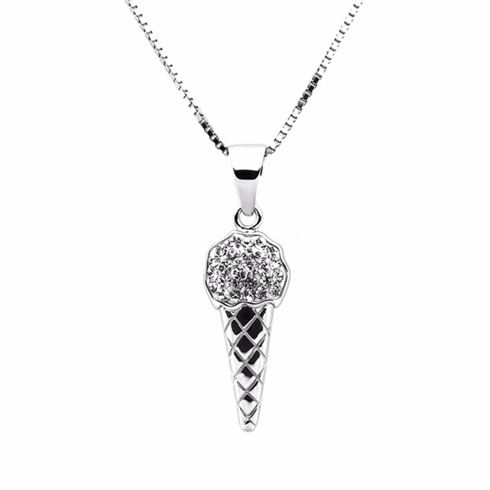 Sweethearts sølvhalskæde med en fin hængende isvaffel. Smykket behøver ikke at blive pudset eller misfarvet som andre sølvsmykker, da det er rhodiumbelagt, hvilket giver et holdbart smykke med en eksklusiv finish, der ligner hvidguld eller platin. I smykket findes mange funklende krystaller af ægte Swarovski-sten.