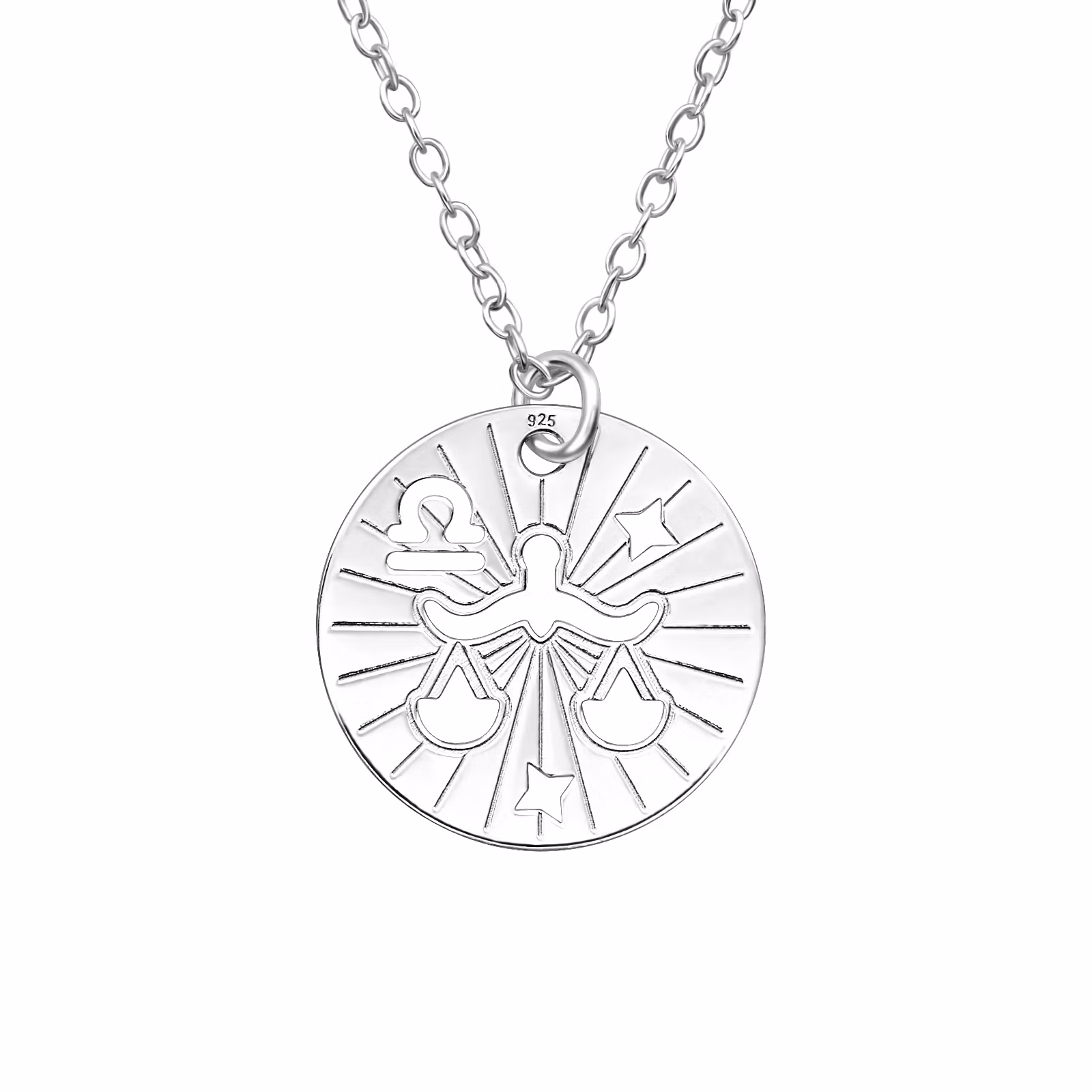 Silverhalsband med Stjärntecken Vågen (Libra) motsvarande födelsedatum 23 sep - 22 okt. Fint smycke med kedja och hängande smycke med bild av Stjärntecknet. Fri Frakt och Presentask!