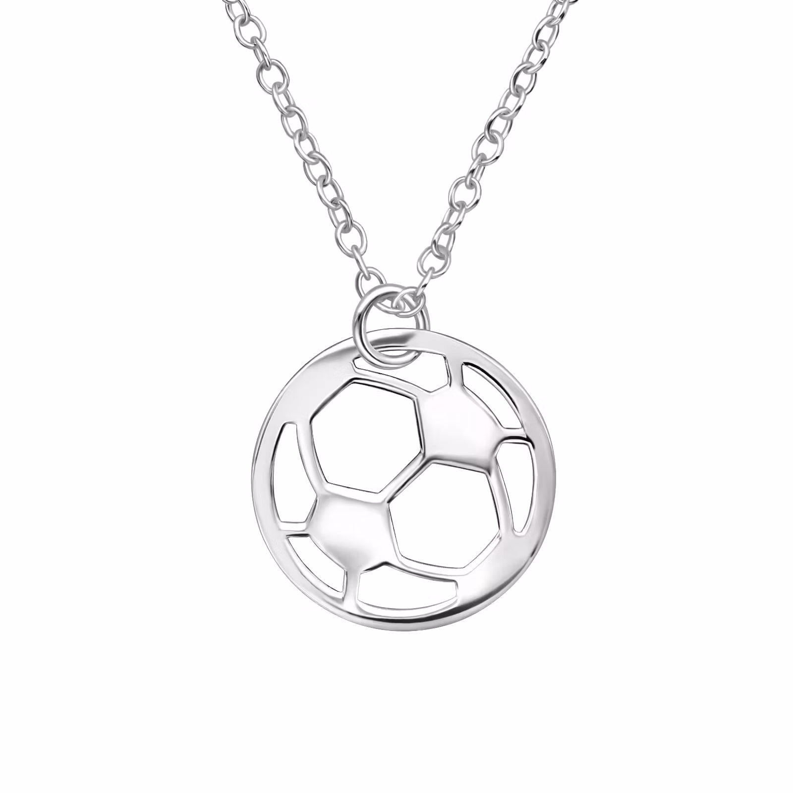 Sött halsband som är fint till en pojke i äkta 925 silver. Ett barnhalsband med en liten fin Fotboll. Detta är ett halsband med en 45cm lång kedja vilket gör att halsbandet passar bra att spara vid present till ett yngre barn eller använda till ett lite äldre barn, det går även bra att fortsätta att använda i vuxen ålder. En kollektion med smycken i miniatyrstorlek som har fina och välgjorda detaljer.