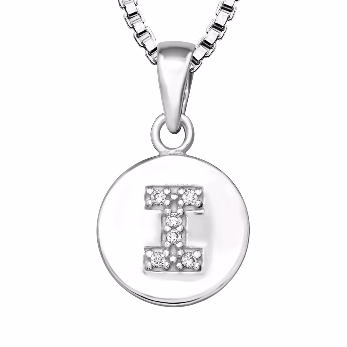 Fint bokstavshalsband i äkta 925 sterling silver som är fint till en pojke. Ett barnhalsband med bokstavsberlock I. En bokstav fylld med glittrande cubic zirkonia stenar. Kedja medföljer, 35cm lång. Ett välgjort silverhalsband som är lika fint att ge bort som present till barn eller vuxen.