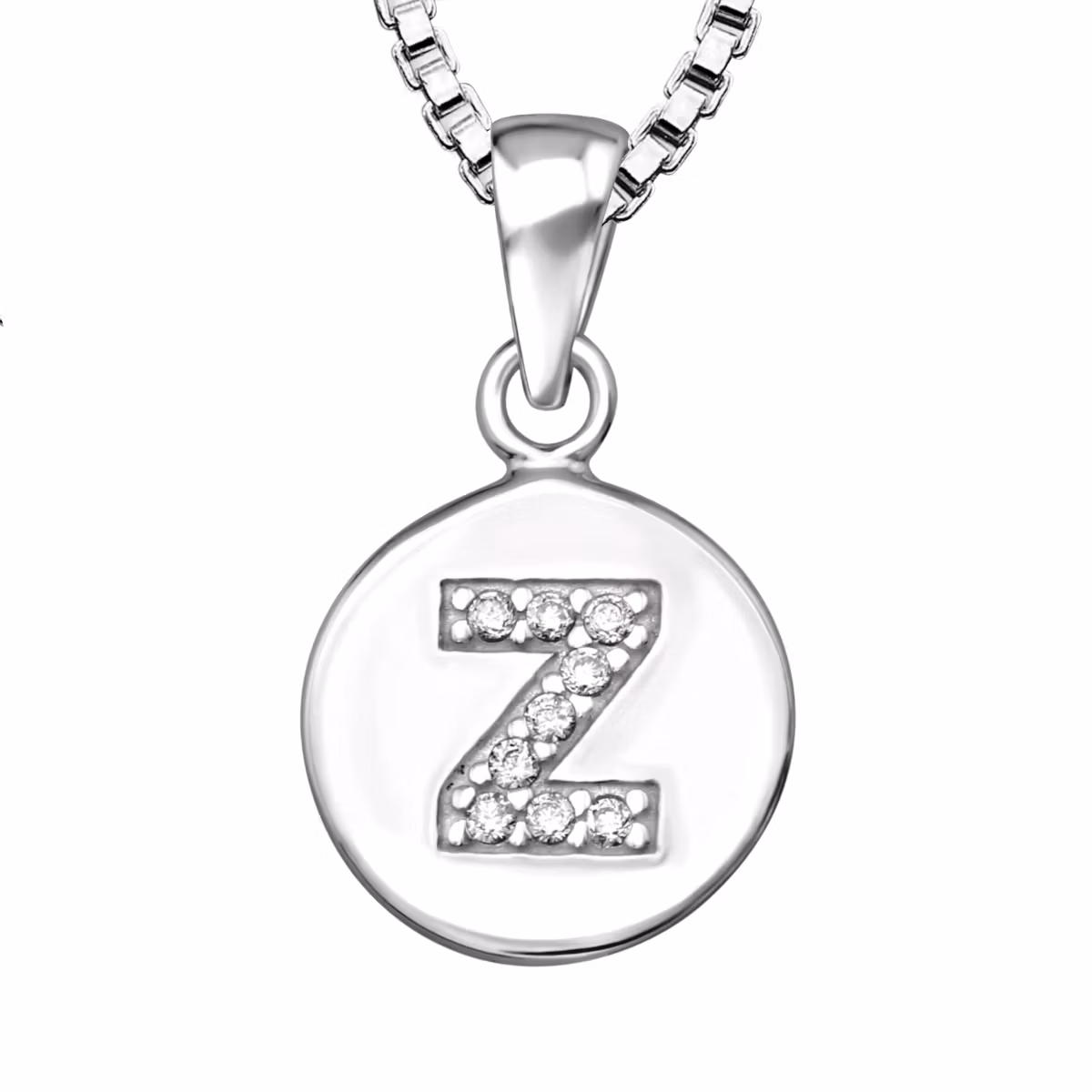 Fint bokstavshalsband i äkta 925 sterling silver som är fint till en pojke. Ett barnhalsband med bokstavsberlock Z. En bokstav fylld med glittrande cubic zirkonia stenar. Kedja medföljer, 35cm lång. Ett välgjort silverhalsband som är lika fint att ge bort som present till barn eller vuxen.
