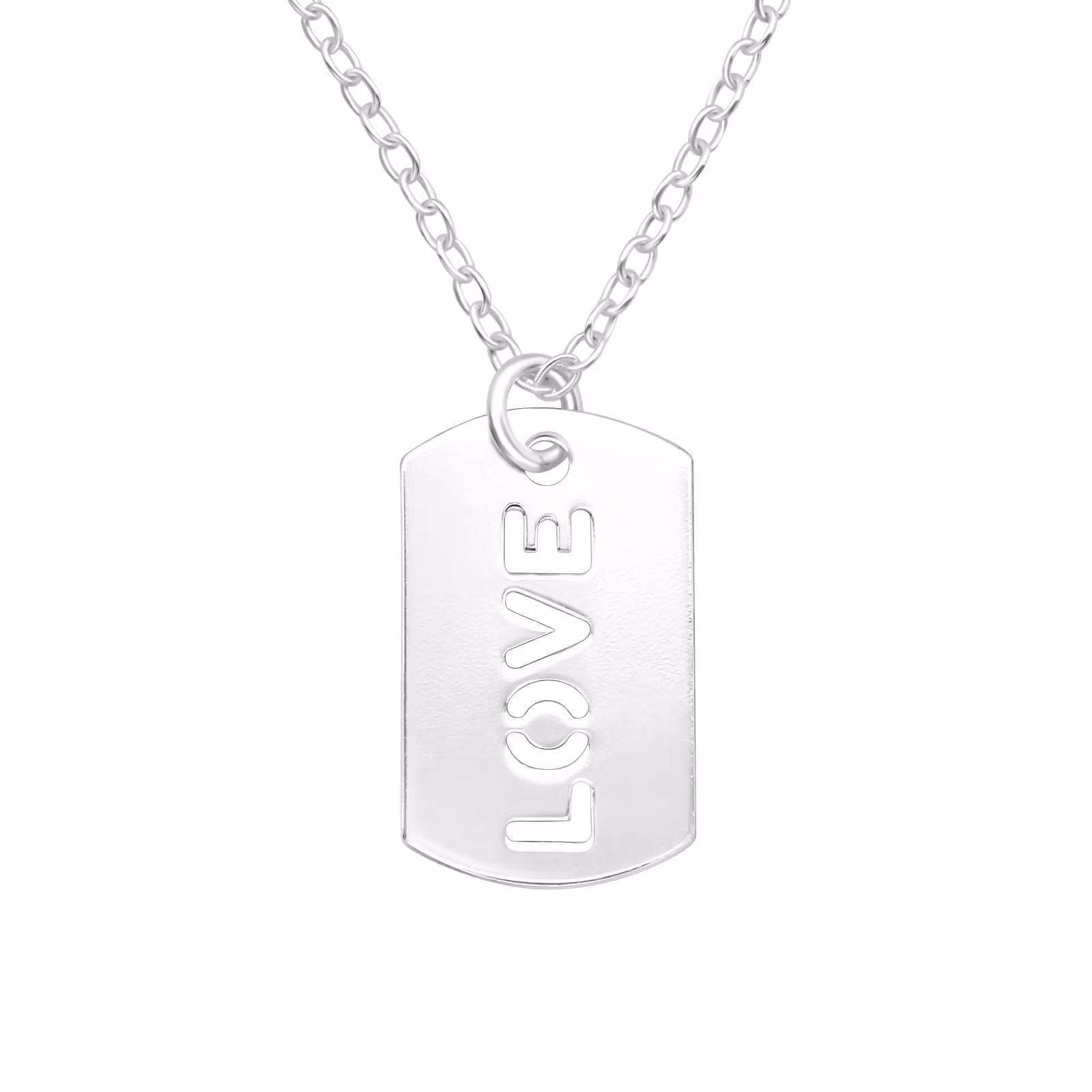 Halsband till pojke Platta med LOVE - barnhalsband i silver