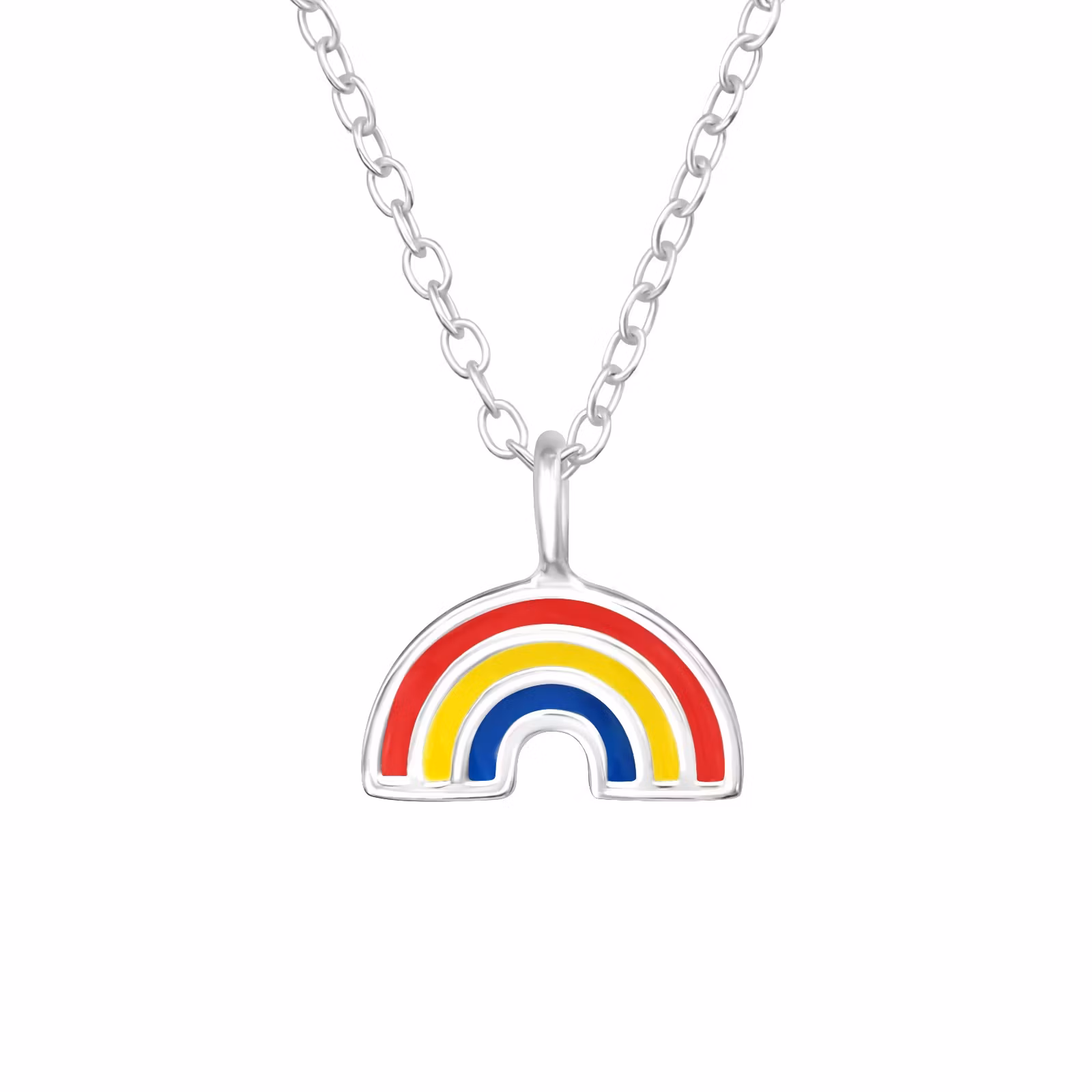 Sött halsband som är fint till en pojke i äkta 925 silver. Ett barnhalsband med en fin Regnbåge i klara färger. Kedja medföljer, 36-39cm lång inklusive förlängningsdel. En kollektion med smycken i miniatyrstorlek som har fina och välgjorda detaljer.