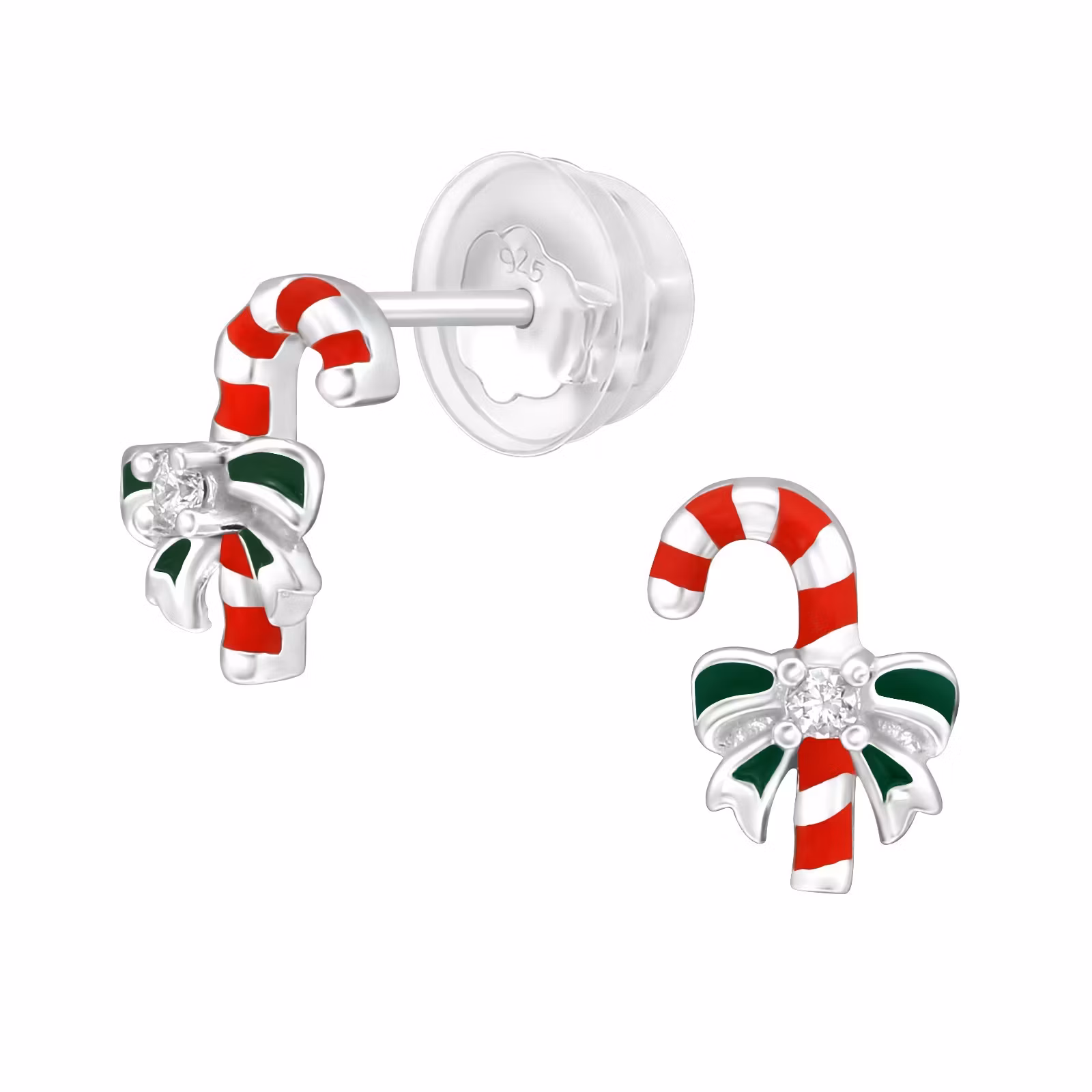 Söta julörhängen till barn i äkta silver. Fina barnörhängen med söta och roliga Polkagriskäppar. Fri Frakt och Presentask! Dessa örhängen har bakploppar i silver som har ett överdrag i silikon så att örhänget smidigt och bekvämt sitter på plats.