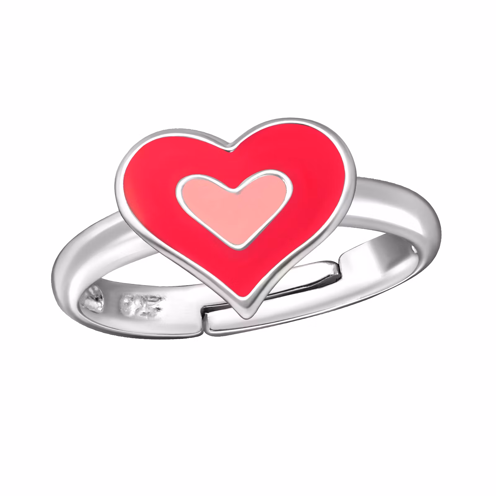 Söt ring till barn i äkta silver. Fin barnring med Hjärta i två olika rosa nyanser. En justerbar ring. Fri Frakt och Presentask!