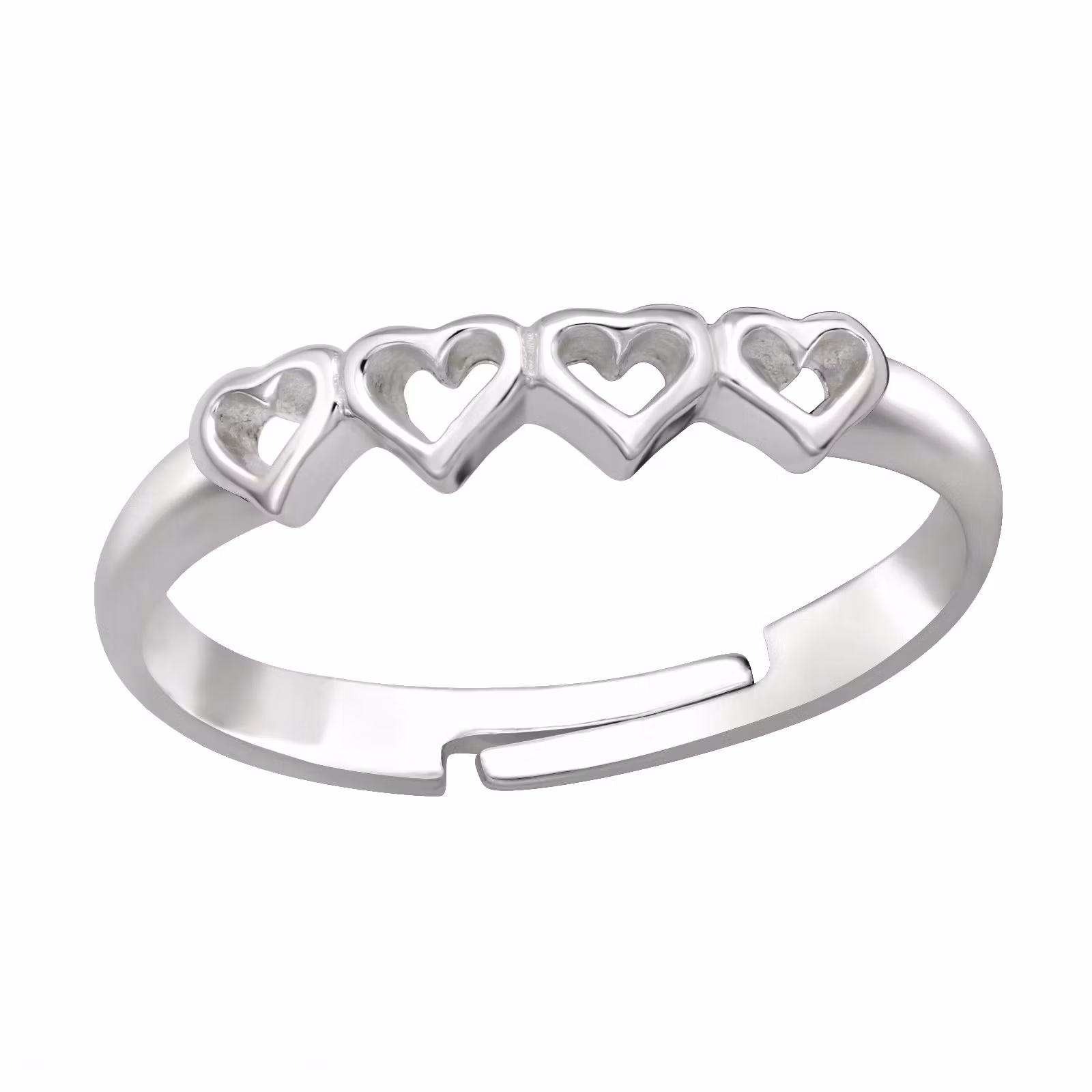 Söt ring till barn i äkta silver. Fin barnring med fyra Hjärtan i rad. En justerbar ring. Fri Frakt och Presentask!