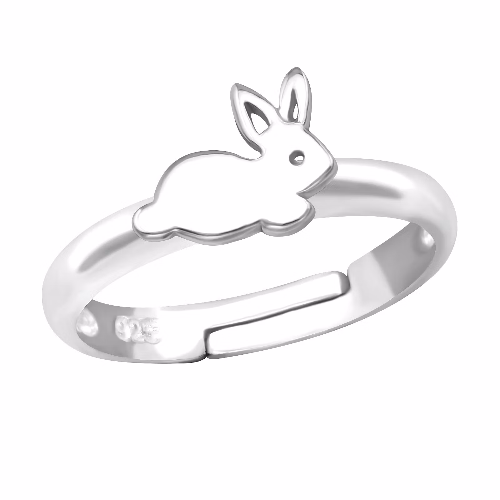 Söt ring till barn i äkta silver. Fin barnring med en gullig Kanin. En justerbar ring. Fri Frakt och Presentask!
