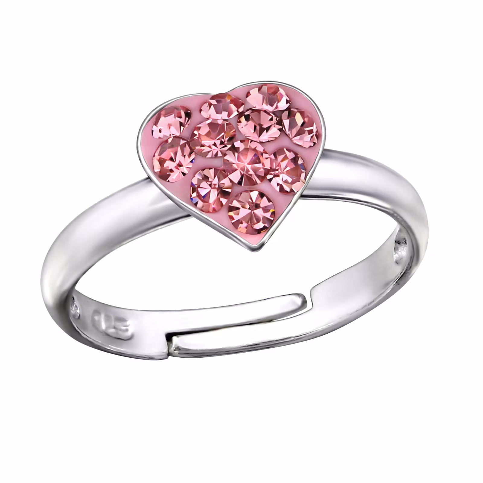 Söt ring till barn i äkta silver. Fin barnring med ett Rosa Hjärta, fullt av glitterstenar. En justerbar ring. Fri Frakt och Presentask!