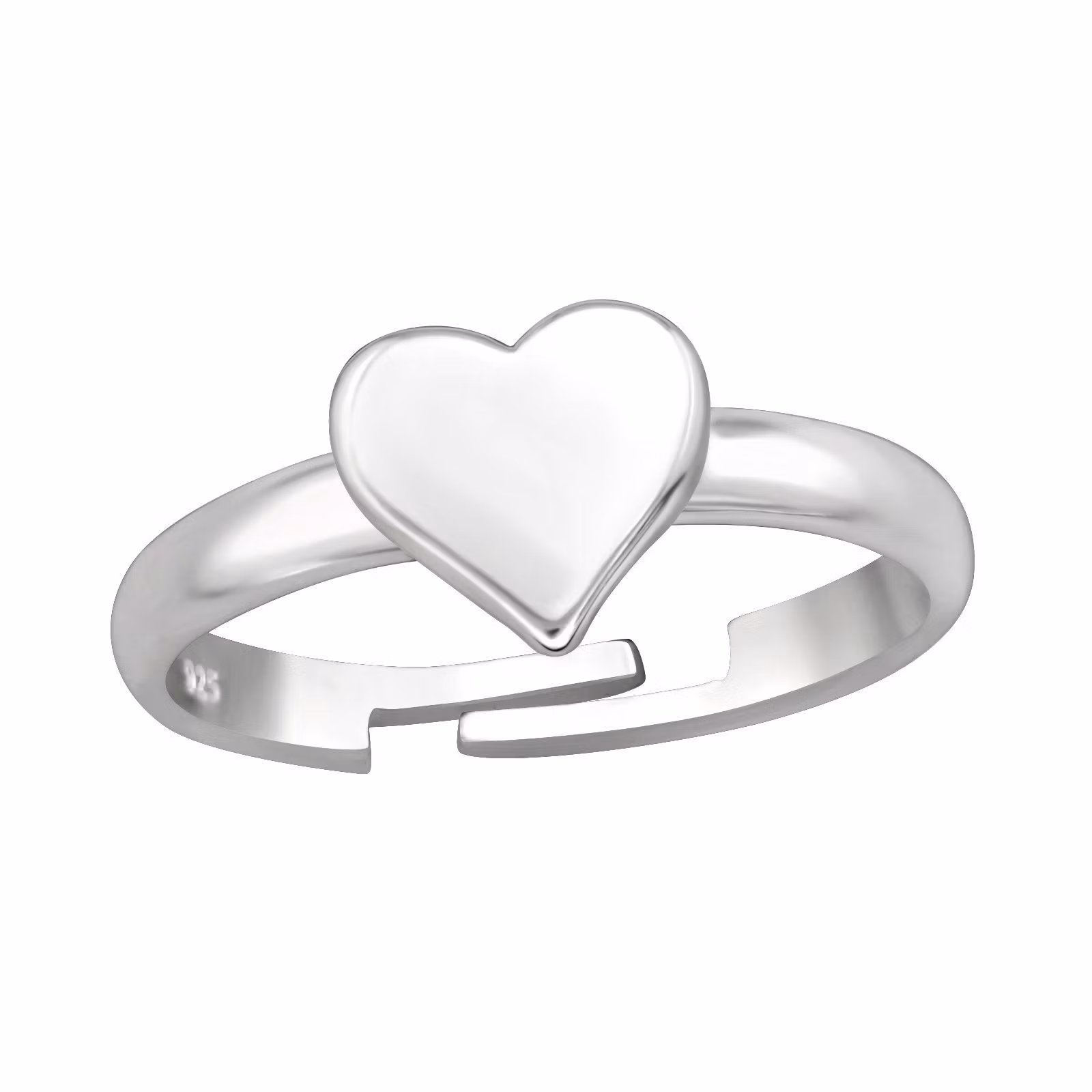 Söt ring till barn i äkta silver. Fin barnring med slätt, gulligt Silverhjärta. En justerbar ring. Fri Frakt och Presentask!