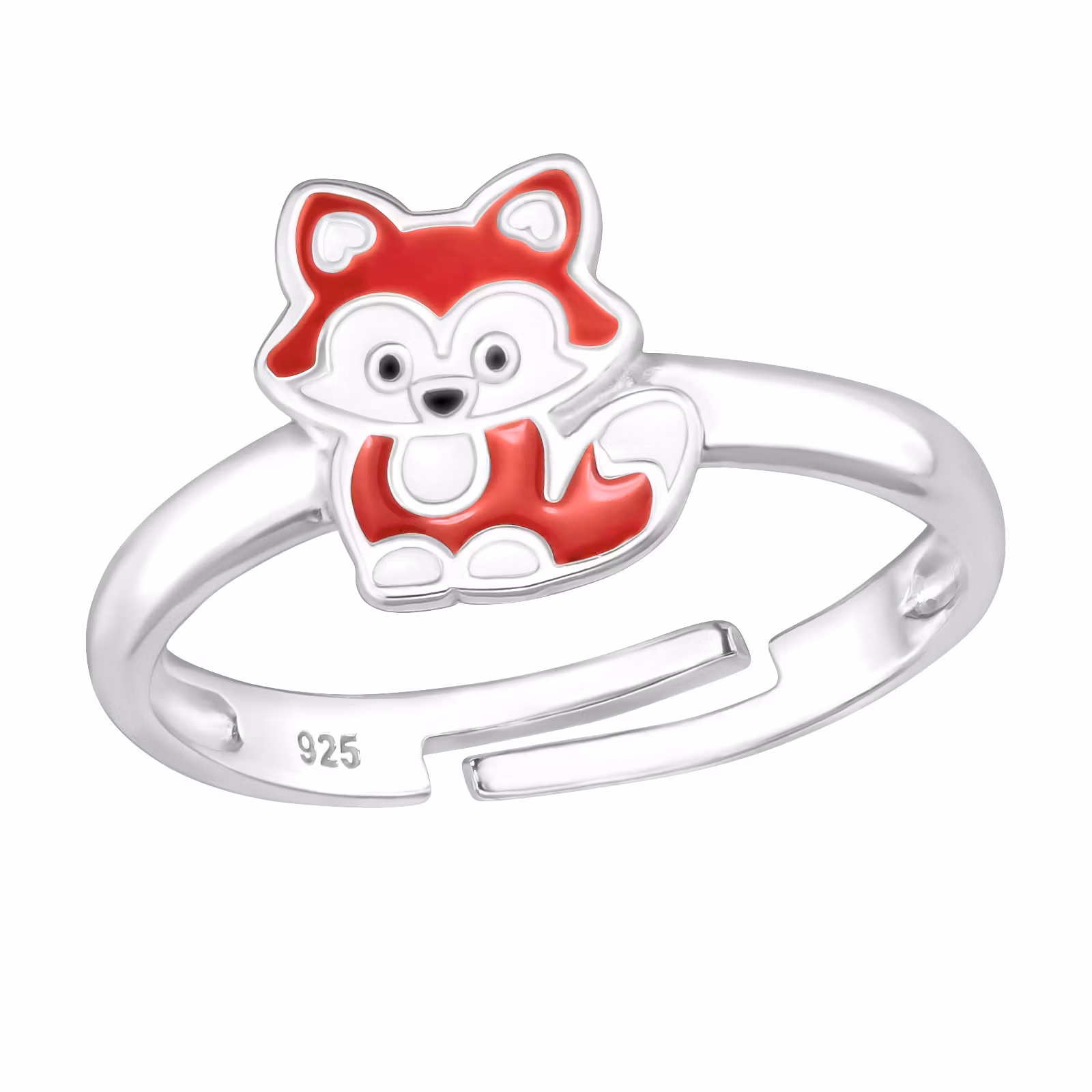 Söt ring till barn i äkta silver. Fin barnring med en gullig, sittande Räv En justerbar ring. Fri Frakt och Presentask!