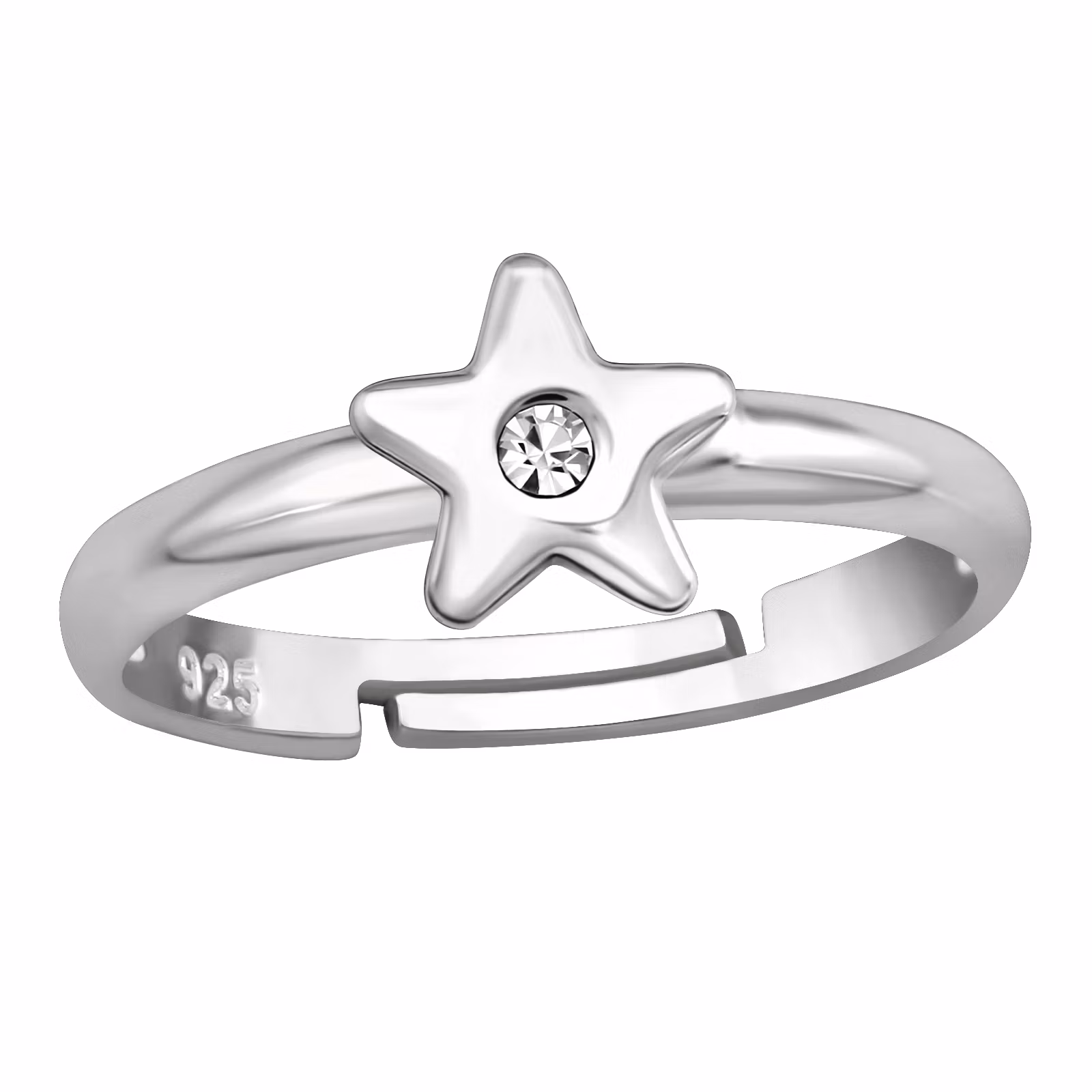Söt ring till barn i äkta silver. Fin barnring med en gullig Stjärna. En justerbar ring. Fri Frakt och Presentask!