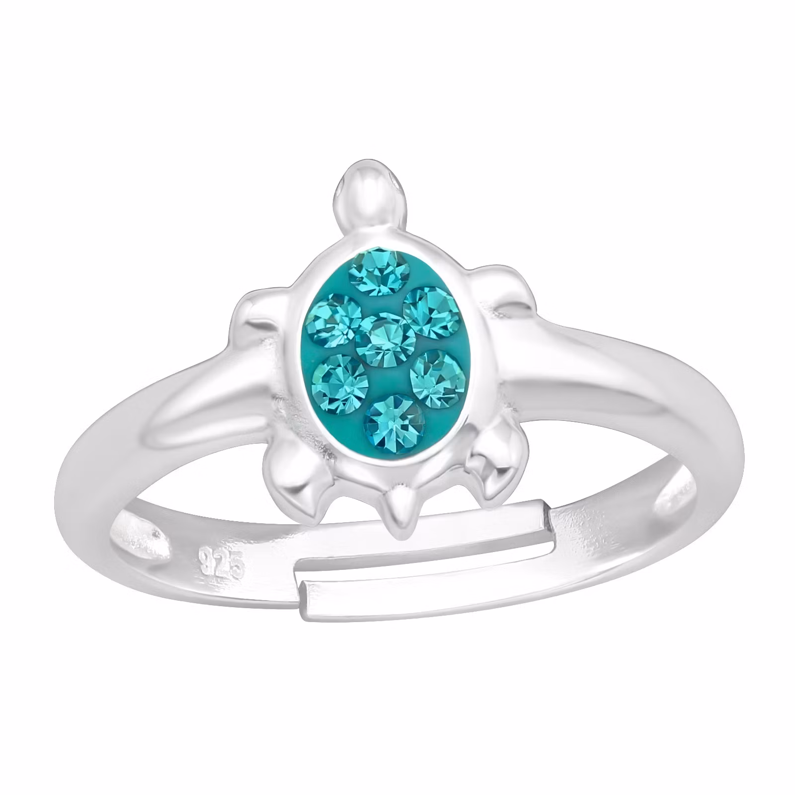 Söt ring till barn i äkta silver. Fin barnring med turkos Sköldpadda som har glittrande stenar. En justerbar ring. Fri Frakt och Presentask!