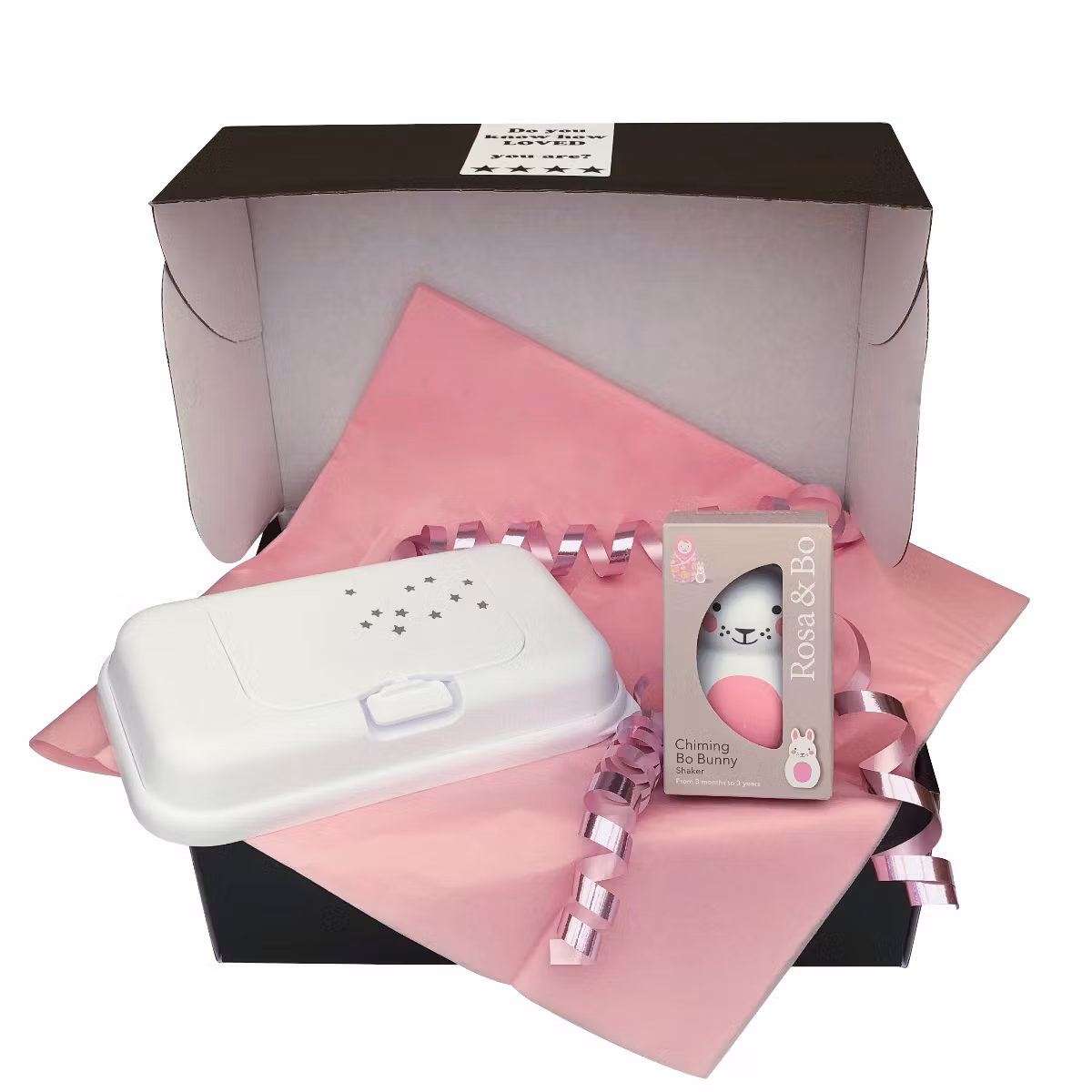 Presentask färdigpackad & klar att ge bort i present till bebisen. Passar även utmärkt som doppresent eller som gåva vid namngivning.