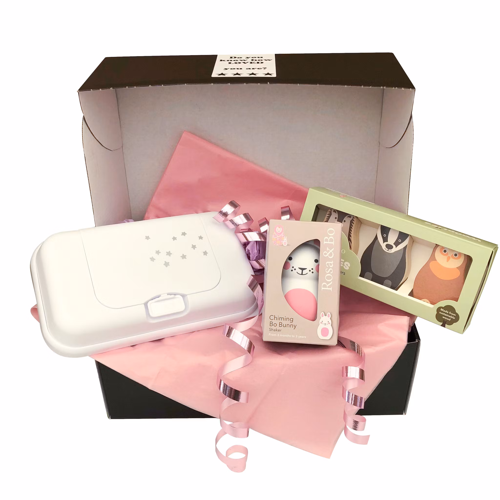 Presentask färdigpackad & klar att ge bort i present till bebisen. Passar även utmärkt som doppresent eller som gåva vid namngivning.
