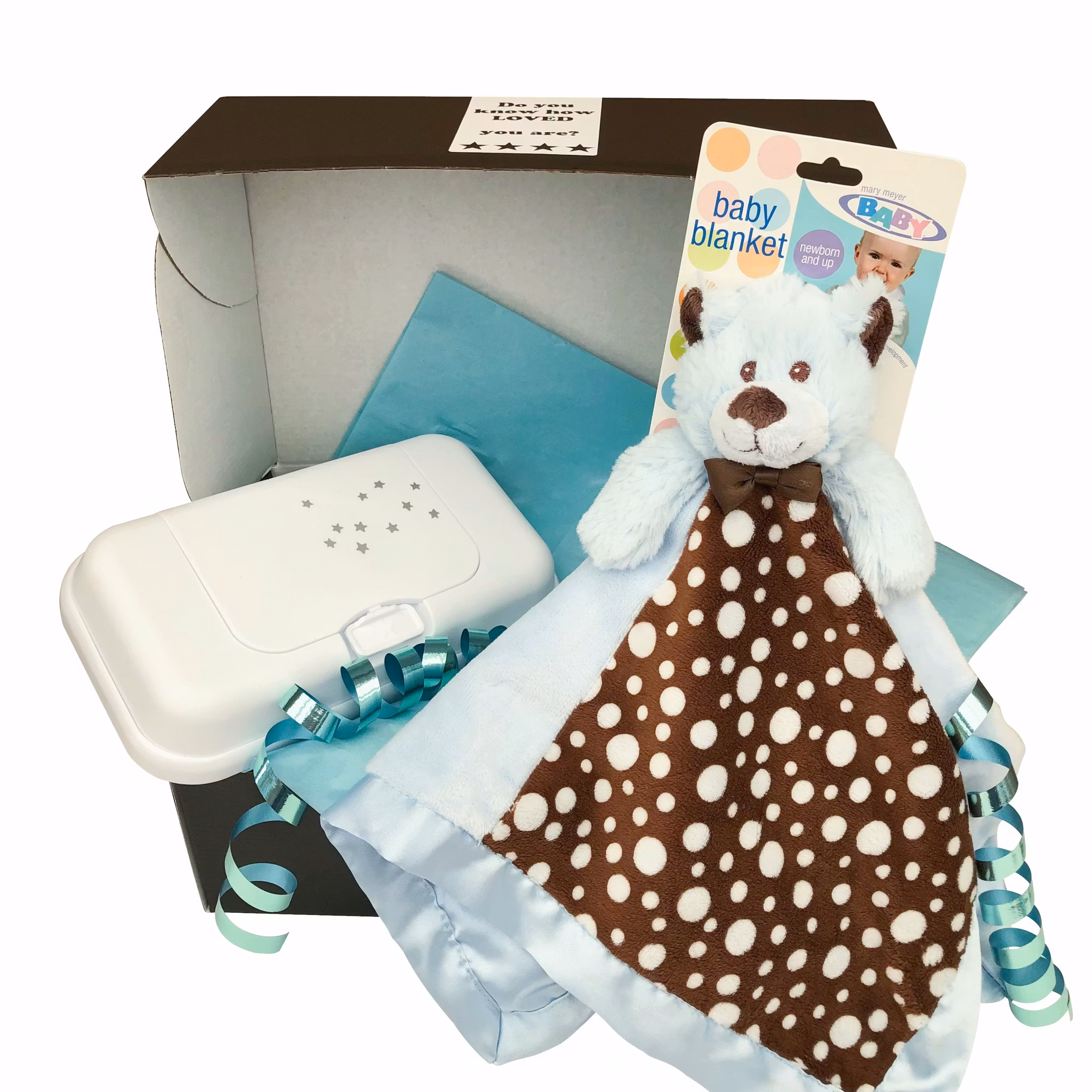 Presentask färdigpackad & klar att ge bort i present till bebisen. Passar även utmärkt som doppresent eller som gåva vid namngivning.
