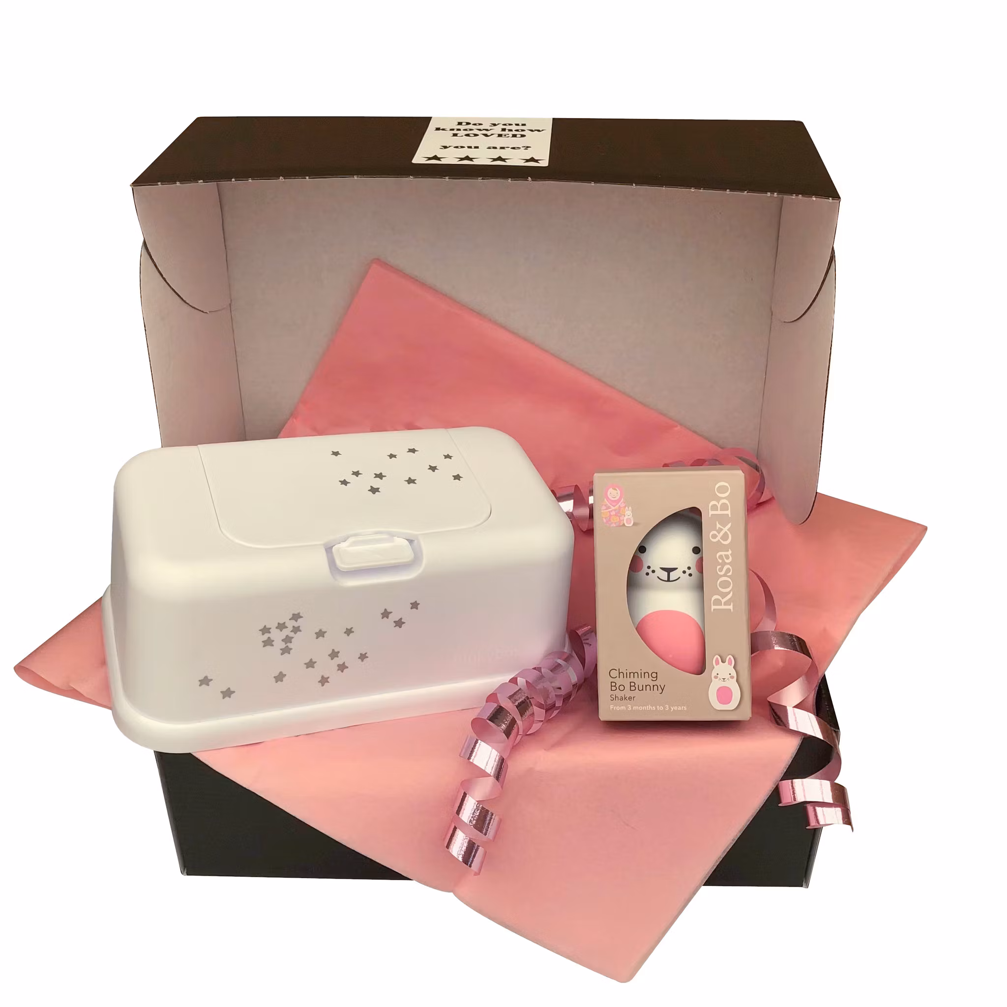 Presentask färdigpackad & klar att ge bort i present till bebisen. Passar även utmärkt som doppresent eller som gåva vid namngivning.