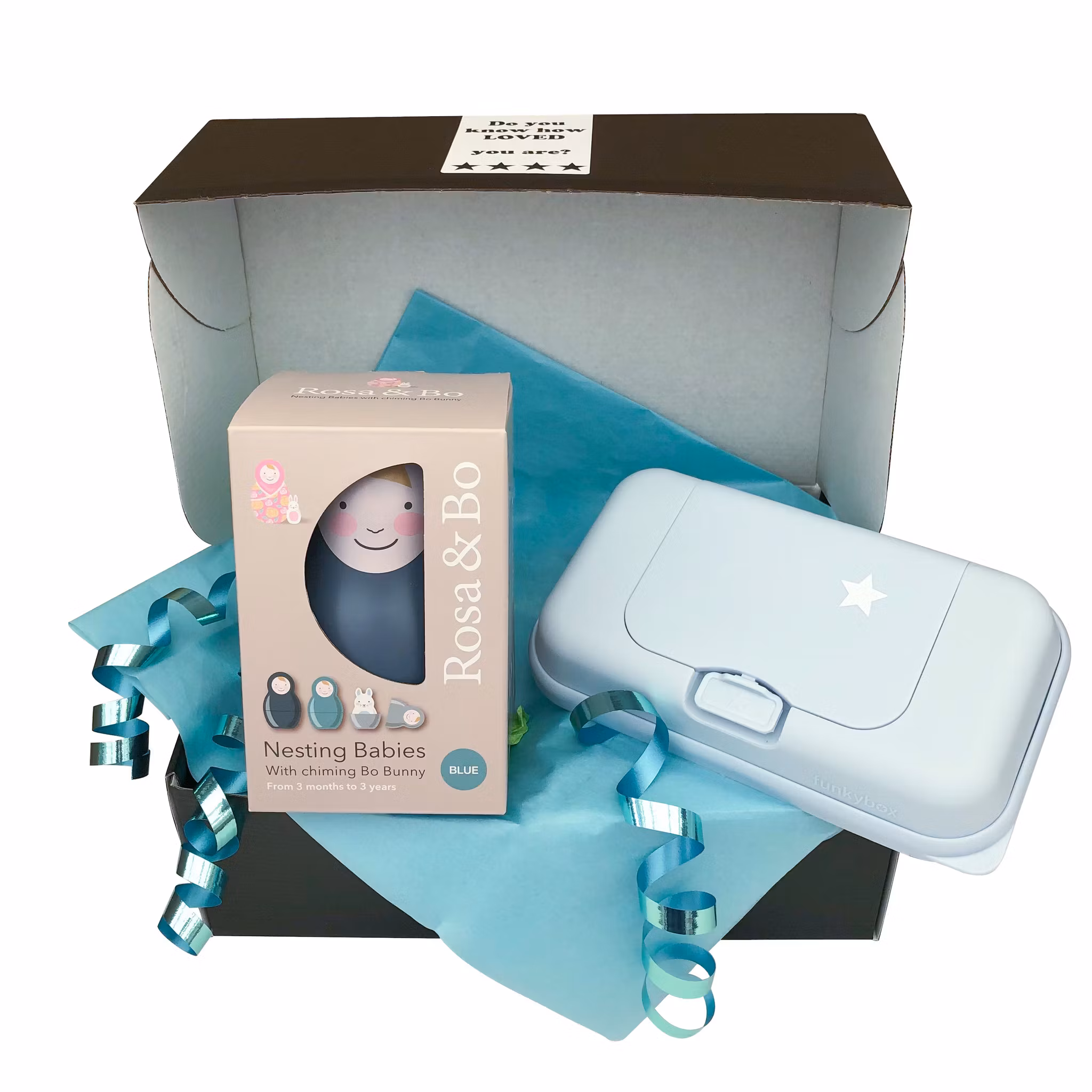 En presentask färdigpackad & klar att ge bort i present till bebisen. Den passar även utmärkt som julklapp, doppresent eller som gåva vid namngivning.