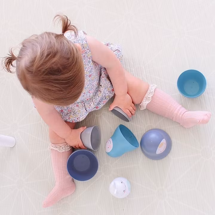 Rosa & Bo är en fin detalj i barnrummet, föräldern kan demonstrera leksaken för den yngre bebisen och det lite äldre barnet kan med spänning upptäcka funktionen själv. Spänningen stegrar när det finns ännu en söt bebis inuti den första och därefter ytterligare en till innan den söta skallrande kaninen Bo dyker upp som en glad överraskning i mitten.